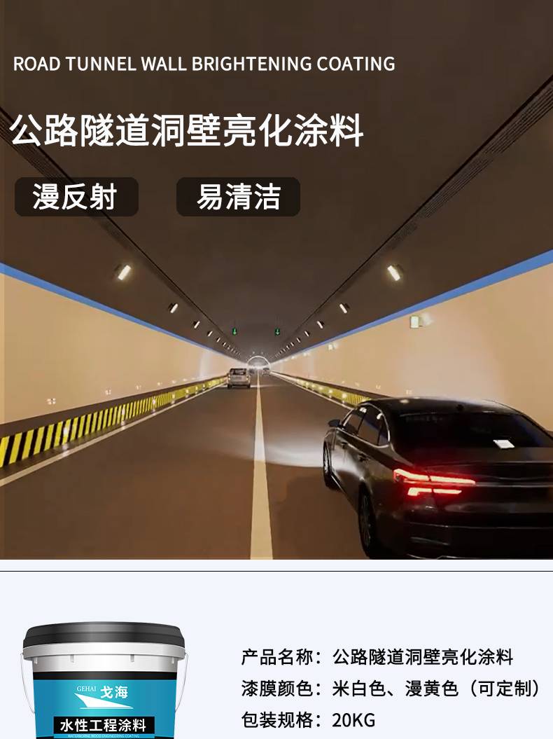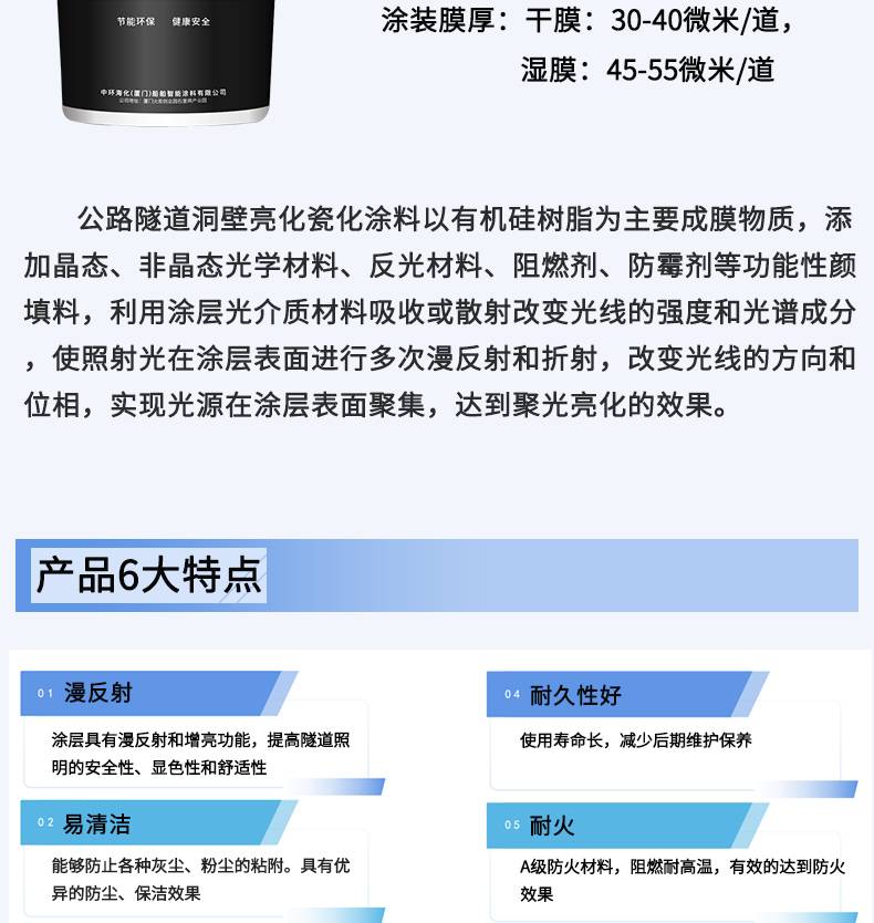 高速公路隧道瓷化涂料 隧 道装饰涂料 阻燃耐火耐污 增亮漫反射效果